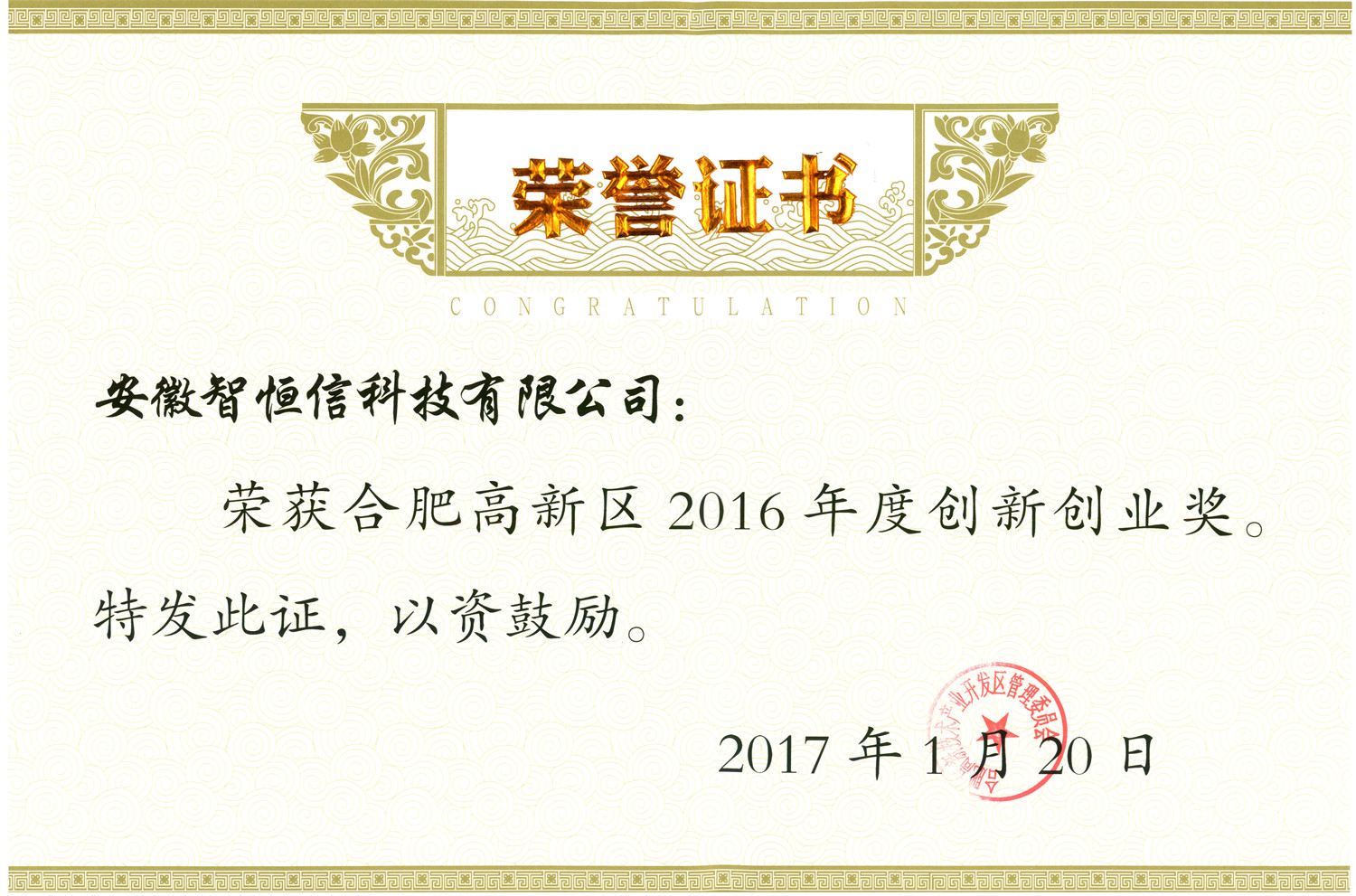合肥高新区2016年度创新创业奖
