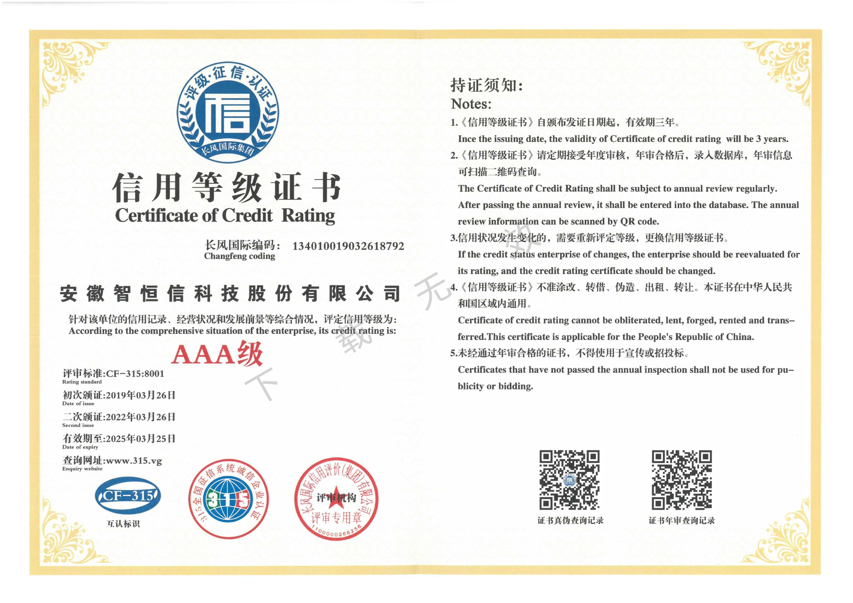 信用等级证书