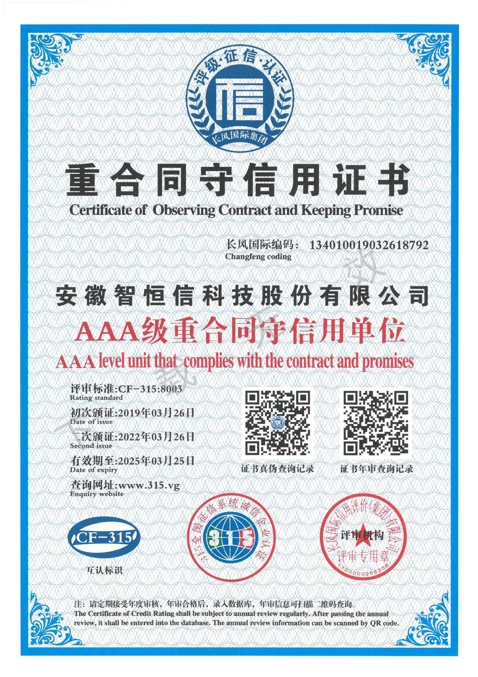 AAA级重合同守信用证书