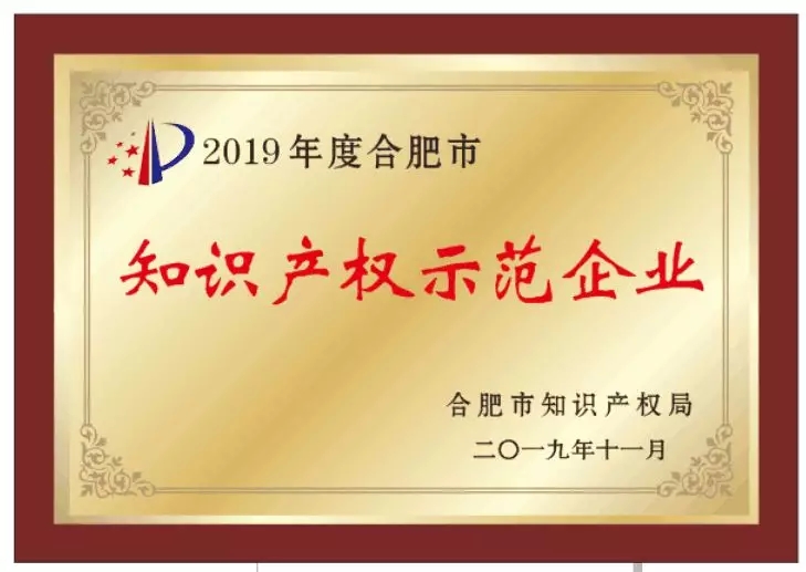 近日,安徽金年会荣获“2019年度合肥市知识产权示范企业”称号。